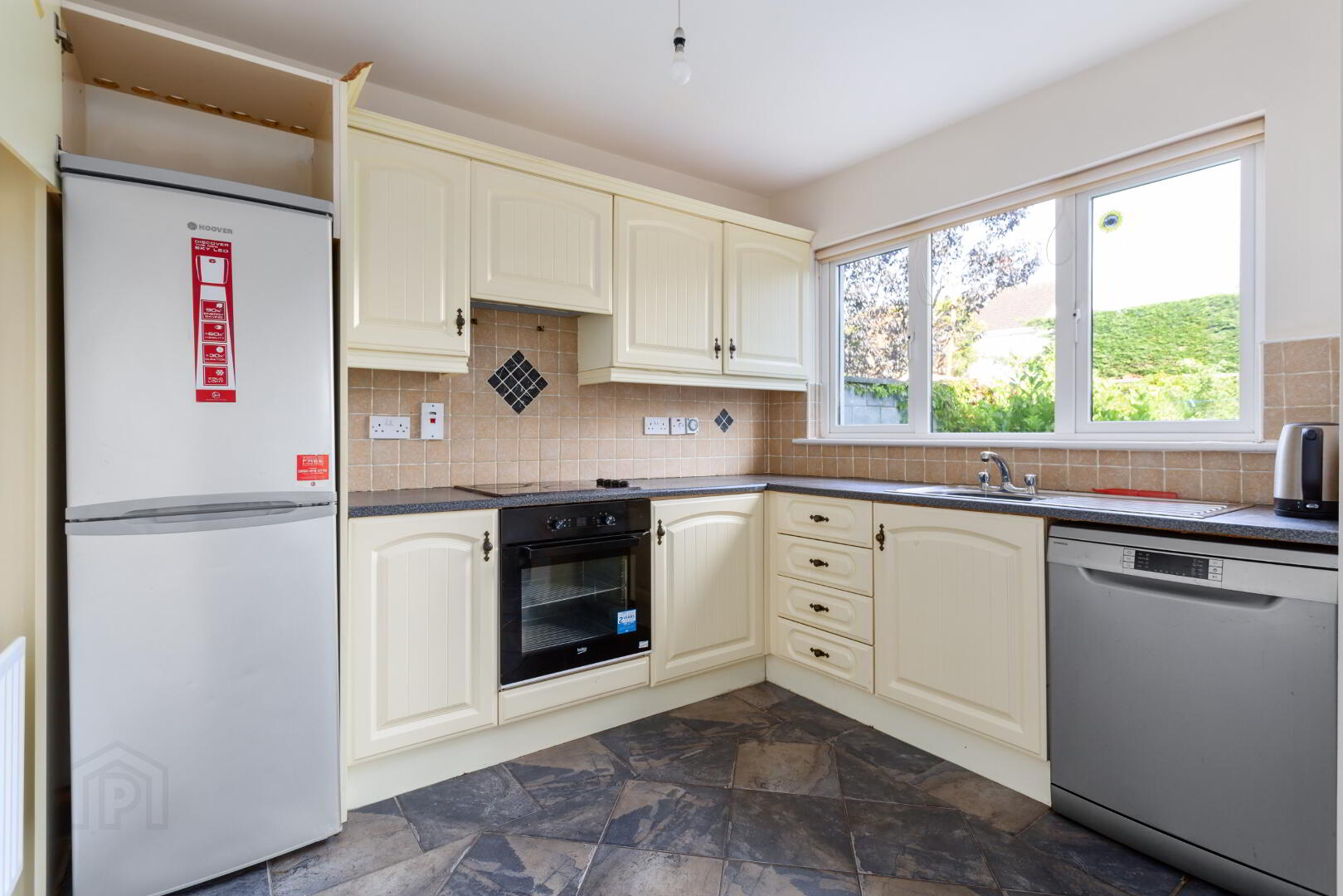 Kitchen/Dining area: 8.089m x 3.906m FItted kitchen with tiled flooring & surround. Sliding doors leading to rear garden.