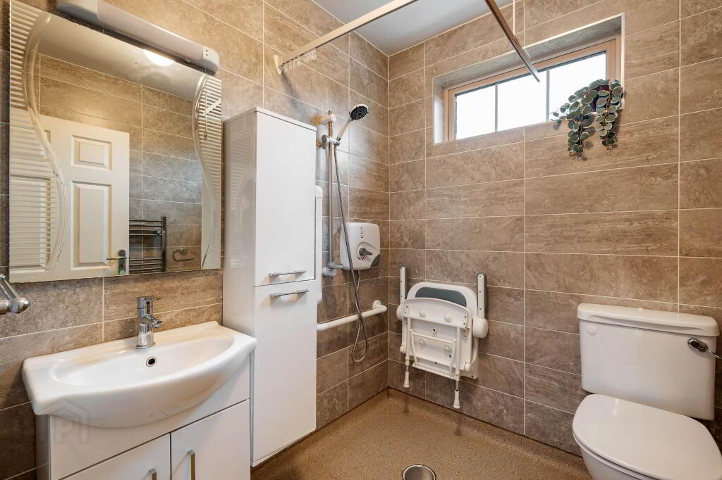 Bathroom - 1.93m (6'4") x 1.82m (6'0") Fully tiled. Wet room style electric shower, w.h.b and w.c.